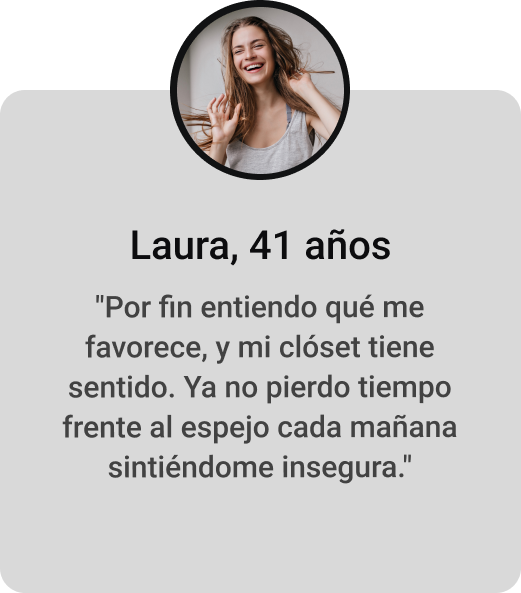 Estudiamos tu silueta corporal. Recomendamos las prendas que mejor equilibran y estilizan tu figura. Te damos sugerencias de vestuario adaptadas a tu estilo de vida.