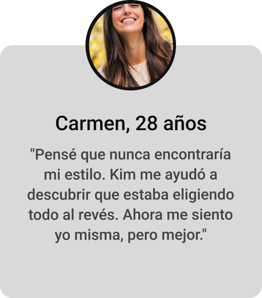 La asesoría de imagen ya no será un lujo inalcanzable. Con Kim tendrás la experiencia de una experta en moda a un precio accesible y diseñado para tu estilo de vida.